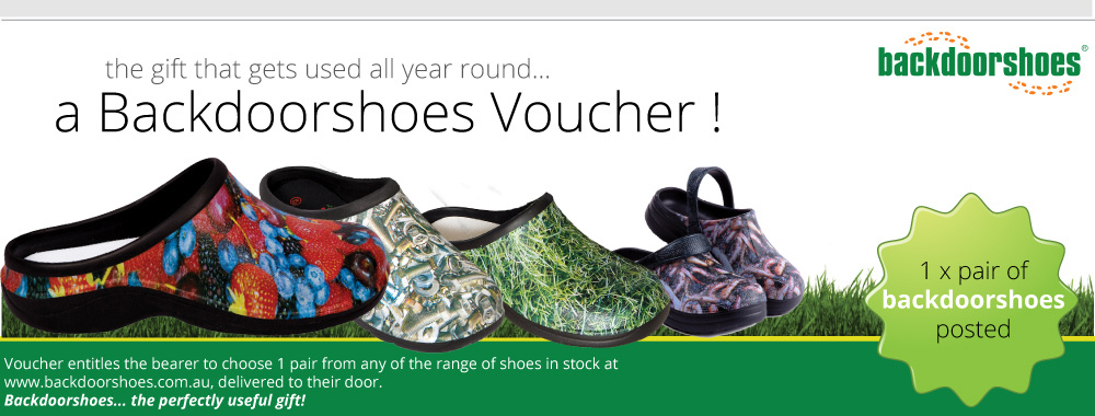 Backdoorshoes... 100% waterproof gardening shoes, in a range of beautiful styles, only $7 postage to Australia / $14 to NZ